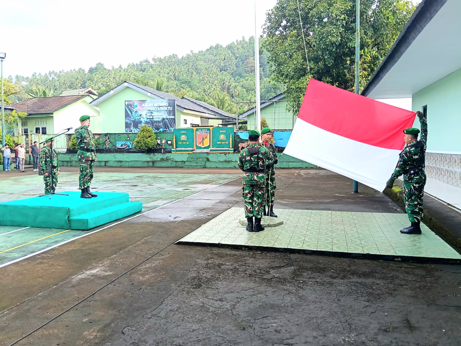 Hadir pula dalam upacara bendera, Pasi Kodim 1301/Sangihe, Danramil, Plh Danramil Jajaran Kodim 1301/Sangihe, Anggota Kodim 1301/Sangihe.
