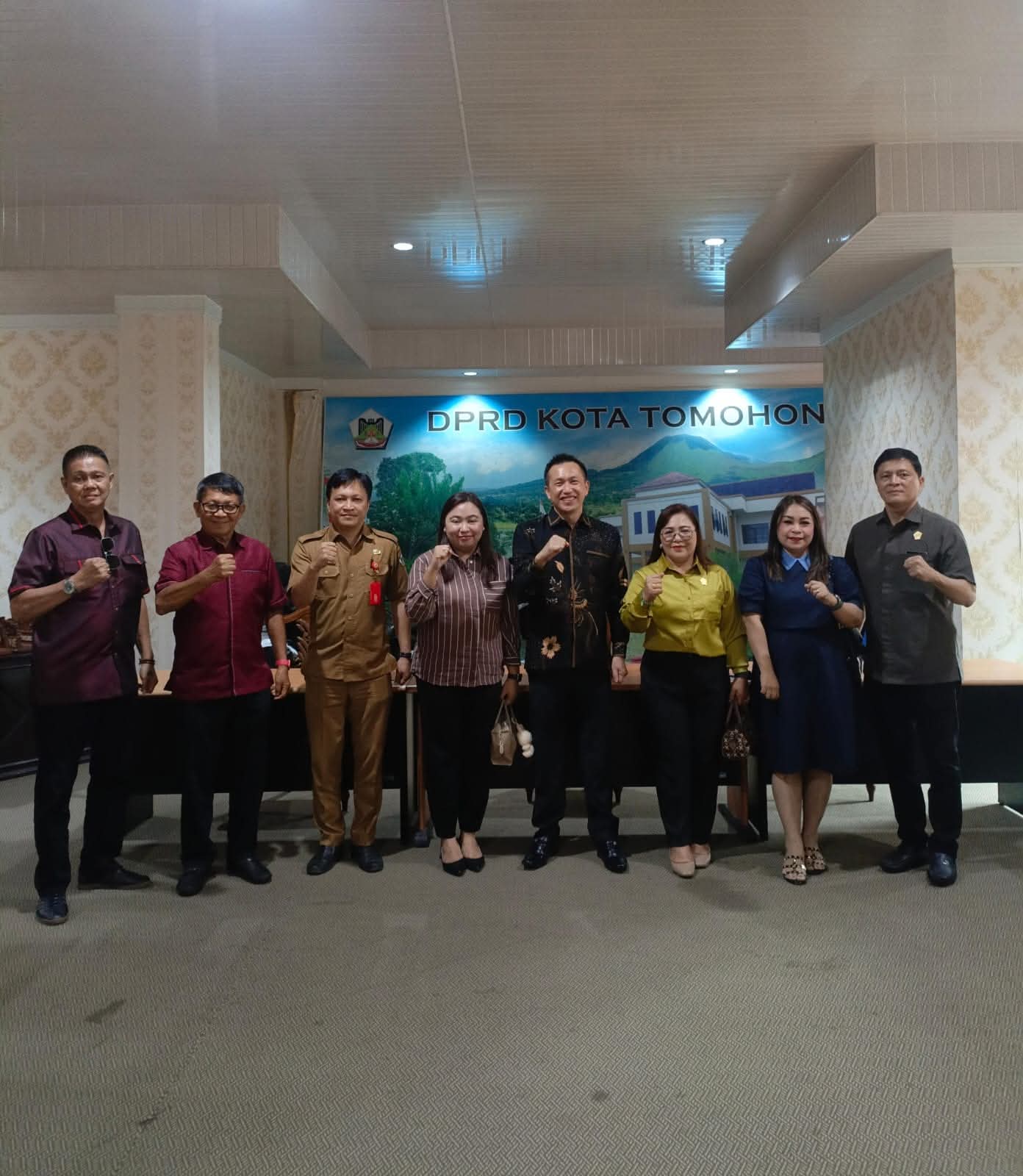 Pertemuan yang berlangsung dalam suasana akrab tersebut kemudian ditutup dengan komitmen untuk terus menjaga koordinasi antar-lembaga. Sebagai simbol kerja sama dan sinergi yang telah dibangun, acara diakhiri dengan sesi foto bersama antara pimpinan dan staf Sekretariat DPRD Kota Tomohon dengan seluruh rombongan Komisi 2 DPRD Kabupaten Minahasa yang terdiri dari Okstesi P. K. Runtu, SH, M.Si, Franky Wolayan, SE, Refly D. Ngantung, SP, Jeffry W. R. Wakkary,Frelly Lolowang, Magda Lala, SE