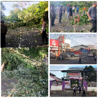 Salah satu aksi yang menonjol hari ini adalah respons cepat personel Satlantas dalam menangani laporan pohon tumbang yang sempat menutup akses jalan utama. Tanpa menunggu lama, petugas langsung berjibaku membersihkan batang dan ranting pohon yang menghalangi jalur kendaraan dengan bantuan personil BPBD, TNI, Pemerintah setempat dan warga sekitar.
