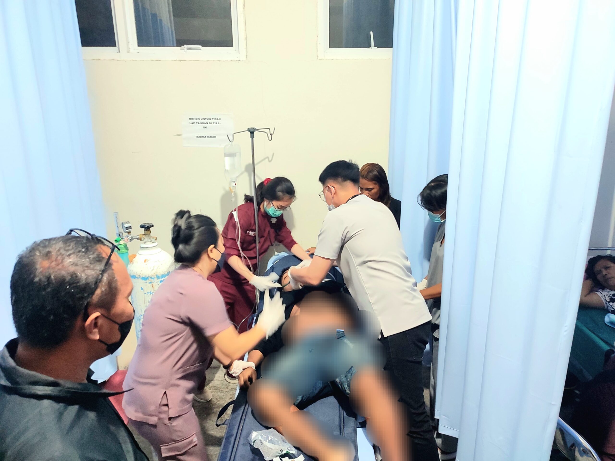 Insiden tersebut terjadi sekitar pukul 00.55 WITA. Korban yang diketahui merupakan warga Kampung Tariang Lama, Kecamatan Kendahe, sempat dilarikan ke RS Liun Kendage Tahuna untuk mendapatkan perawatan medis. Namun, nyawanya tidak tertolong dan dinyatakan meninggal dunia pada pukul 02.34 WITA.