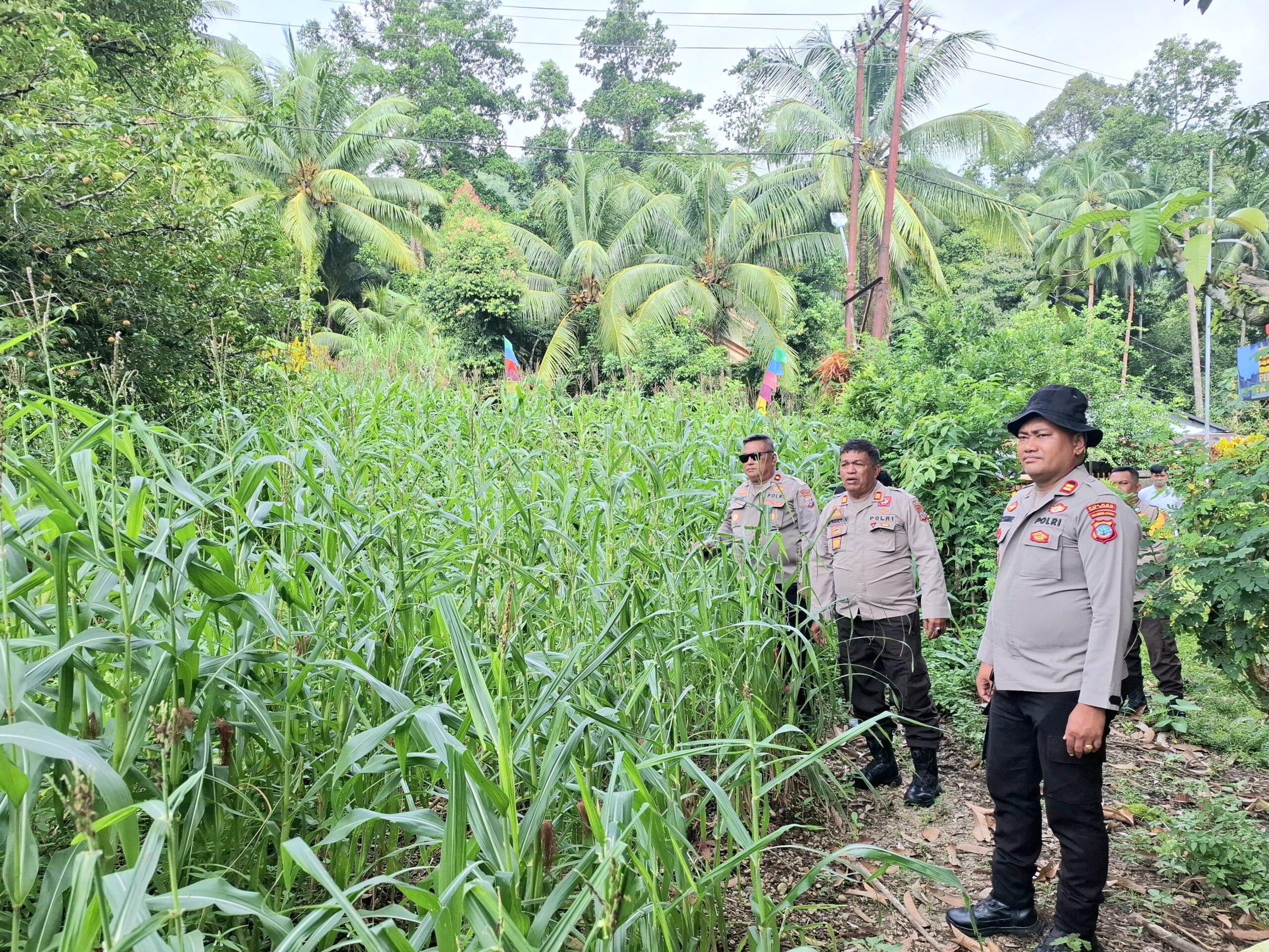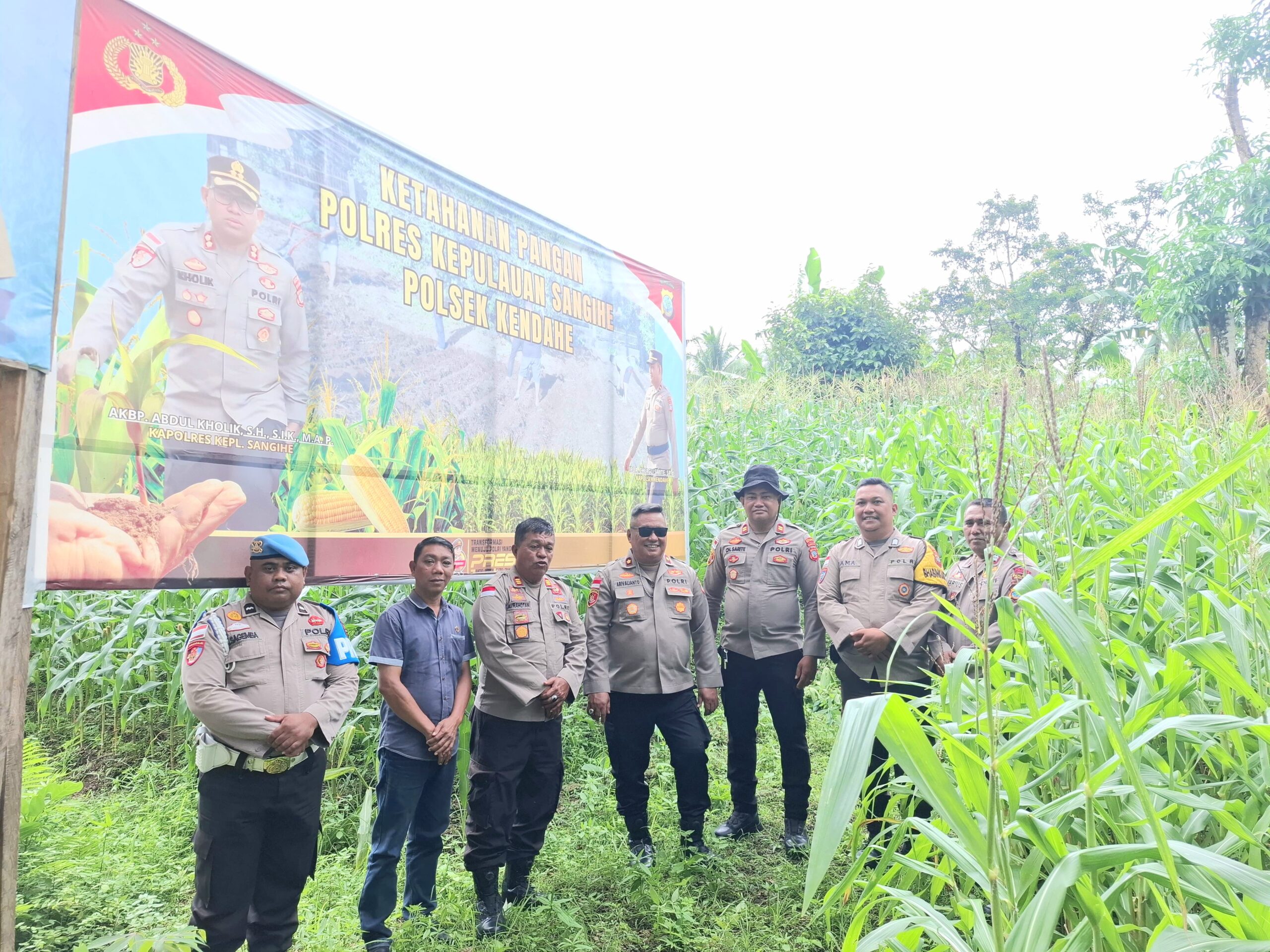 Wakil Kepala Kepolisian Resor (Waka Polres) Kepulauan Sangihe, Kompol Arivalianto Bermuli, SH, MH, bersama Kepala Bagian Sumber Daya Manusia (Kabag SDM) AKP Anderson Rahotan, melakukan pengecekan lahan jagung di Kecamatan Kendahe, Kelurahan Kendahe I, Kamis (15/1/2026).