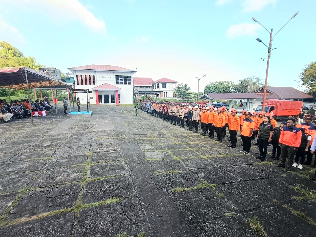 apel penutupan yang digelar di Terminal Ulu Siau, Kelurahan Tarorane, Kecamatan Siau Timur, Minggu (18/1/2026) sore. Apel penutupan dipimpin langsung oleh Bupati Kepulauan Sitaro, Chyntia Inggrid Kalangit, S.Km, selaku pimpinan apel. Sementara itu, Perwira Apel dijabat oleh Sekretaris BPBD Kepulauan Sitaro, Stenly Marthin, dan Komandan Apel oleh Kapten Inf Meinhard Lolaro selaku Pasiops Kodim 1301/Sangihe.