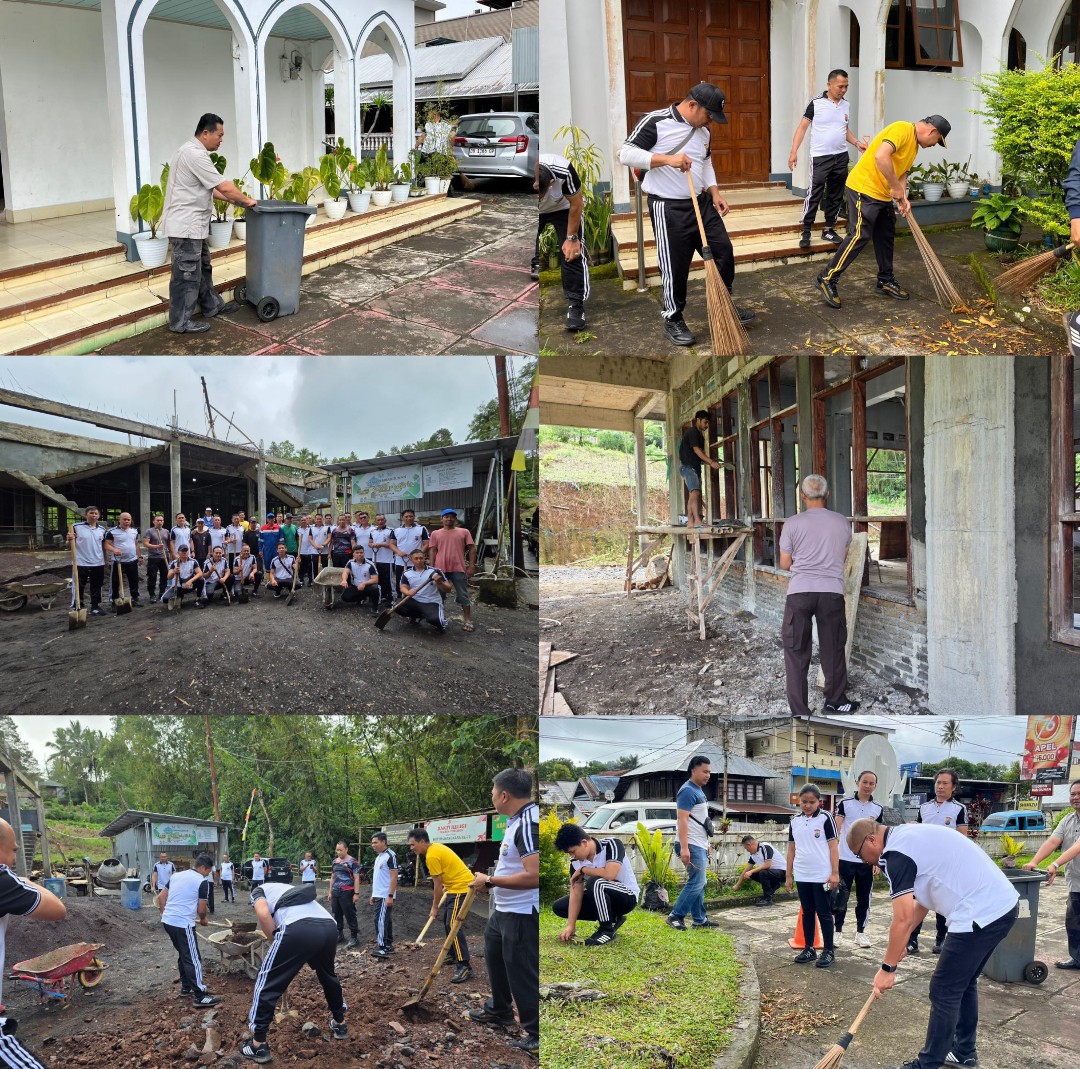 Pada saat yang sama, konsentrasi personel juga dipusatkan pada giat korvei di Masjid Al-Muhajirin Uluindano. Dipimpin oleh Kabag Log Polres Tomohon, AKP Raymond Sendawana, S.H., personel kepolisian bersama pengurus masjid melakukan pembersihan intensif di area sekitar bangunan.