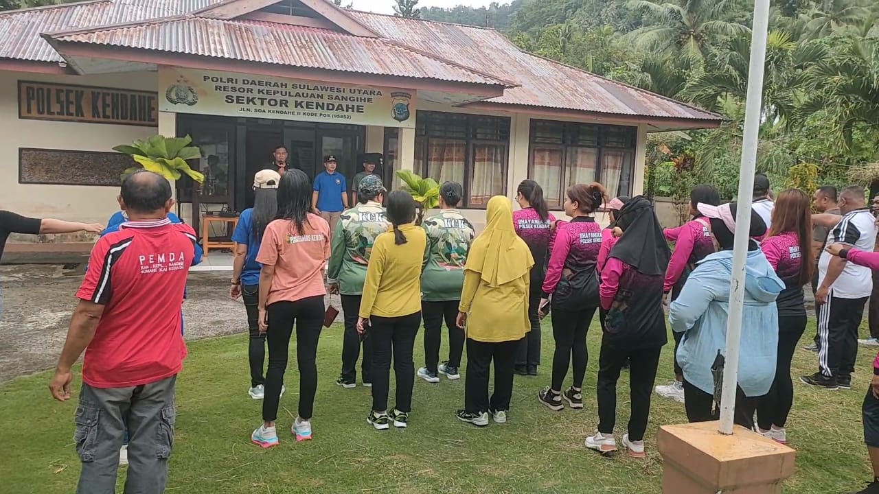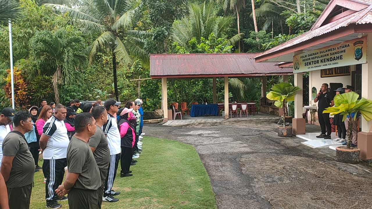 SANGIHE, GLOBALBERITA– Personil Polsek Kendahe melaksanakan kegiatan Olahraga bersama Forkopimca, diawali dengan apel di halaman polsek kendahe, Jumat (13/2/2026).