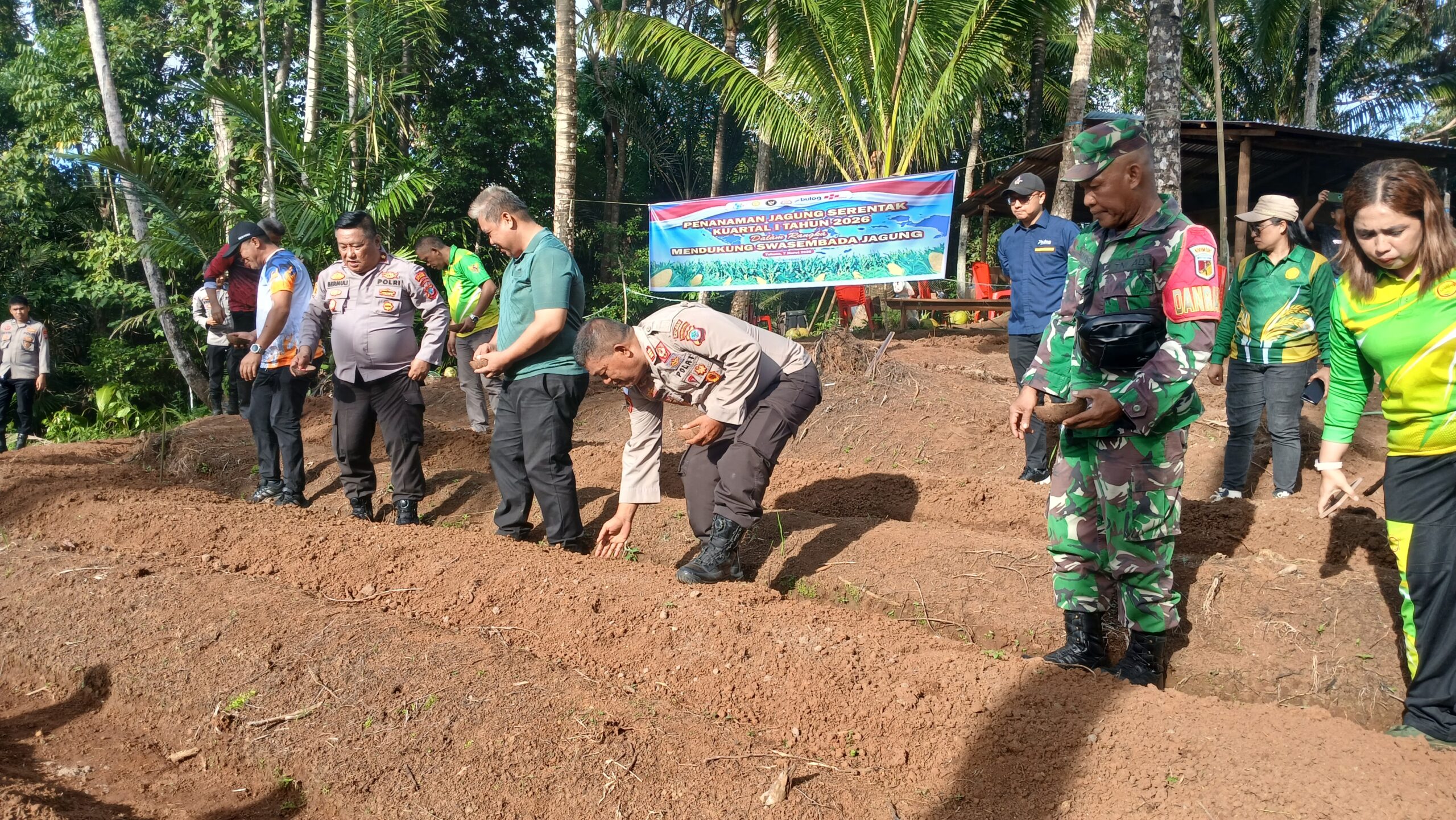 SANGIHE, GLOBALBERITA— Polres Kepulauan Sangihe menggelar penanaman jagung kuartal I tahun 2026 di Lahan Kampung Manumpitaeng, Kecamatan Manganitu, Sabtu (7/3/2026).