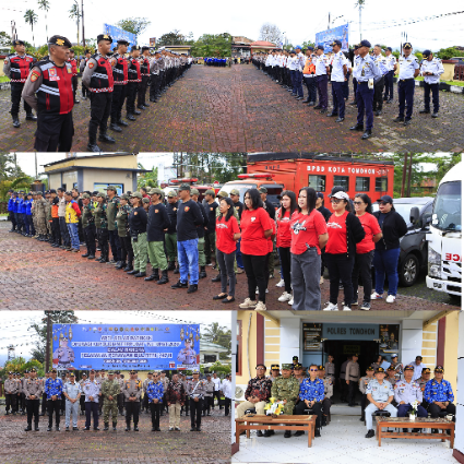 Hadir dalam kegiatan tersebut jajaran Pemerintah Kota Tomohon yang diwakili Asisten I Drs. O.D.S. Mandagi, perwakilan Kodim 1302 Minahasa, serta pimpinan instansi terkait seperti Dinas Perhubungan, BPBD, dan Jasa Raharja. Barisan peserta apel yang terdiri dari personel gabungan TNI-Polri dan unsur pemerintah daerah menunjukkan kesiapan penuh dalam mengawal agenda nasional ini. Kegiatan diakhiri dengan penyematan pita operasi sebagai simbol kesiapan petugas dalam memberikan pelayanan yang responsif dan solutif bagi masyarakat.
