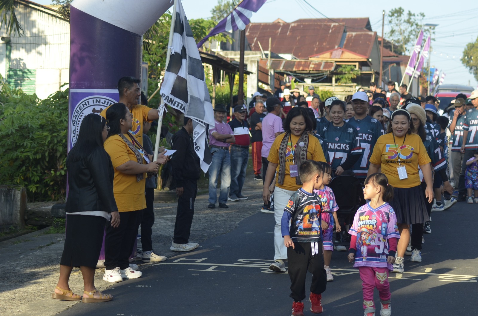 ​Memasuki agenda lapangan, jemaat dari berbagai kolom tampak antusias mengikuti Lomba Jalan Sehat. Peserta dilepas berdasarkan urutan kehadiran kolom masing-masing, menciptakan pemandangan yang meriah di sepanjang rute jalan di Kelurahan Uner.