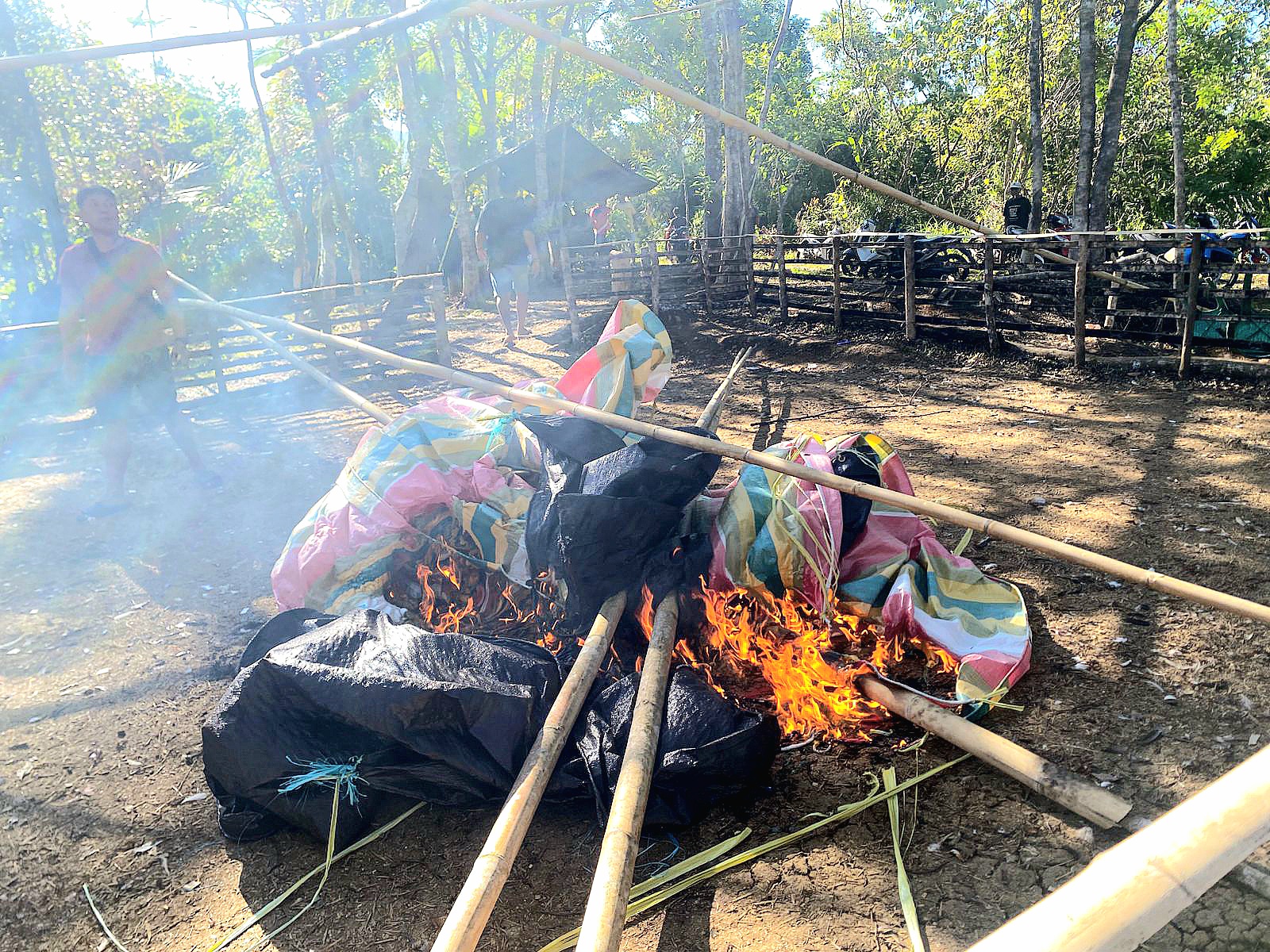 Selain membubarkan kegiatan, aparat juga melakukan pembongkaran dan pemusnahan arena sabung ayam di lokasi.