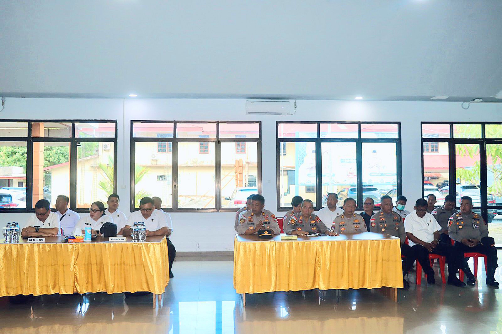 Rombongan tim audit dipimpin oleh Pengawas Tim I, Kombes Pol C. Bambang Harlyanto, didampingi Ketua Tim Kompol Yessy Atotoy beserta anggota tim lainnya. Setelah penjemputan, tim menuju Tahuna Beach Hotel and Resort untuk beristirahat sejenak sebelum melanjutkan agenda kegiatan.