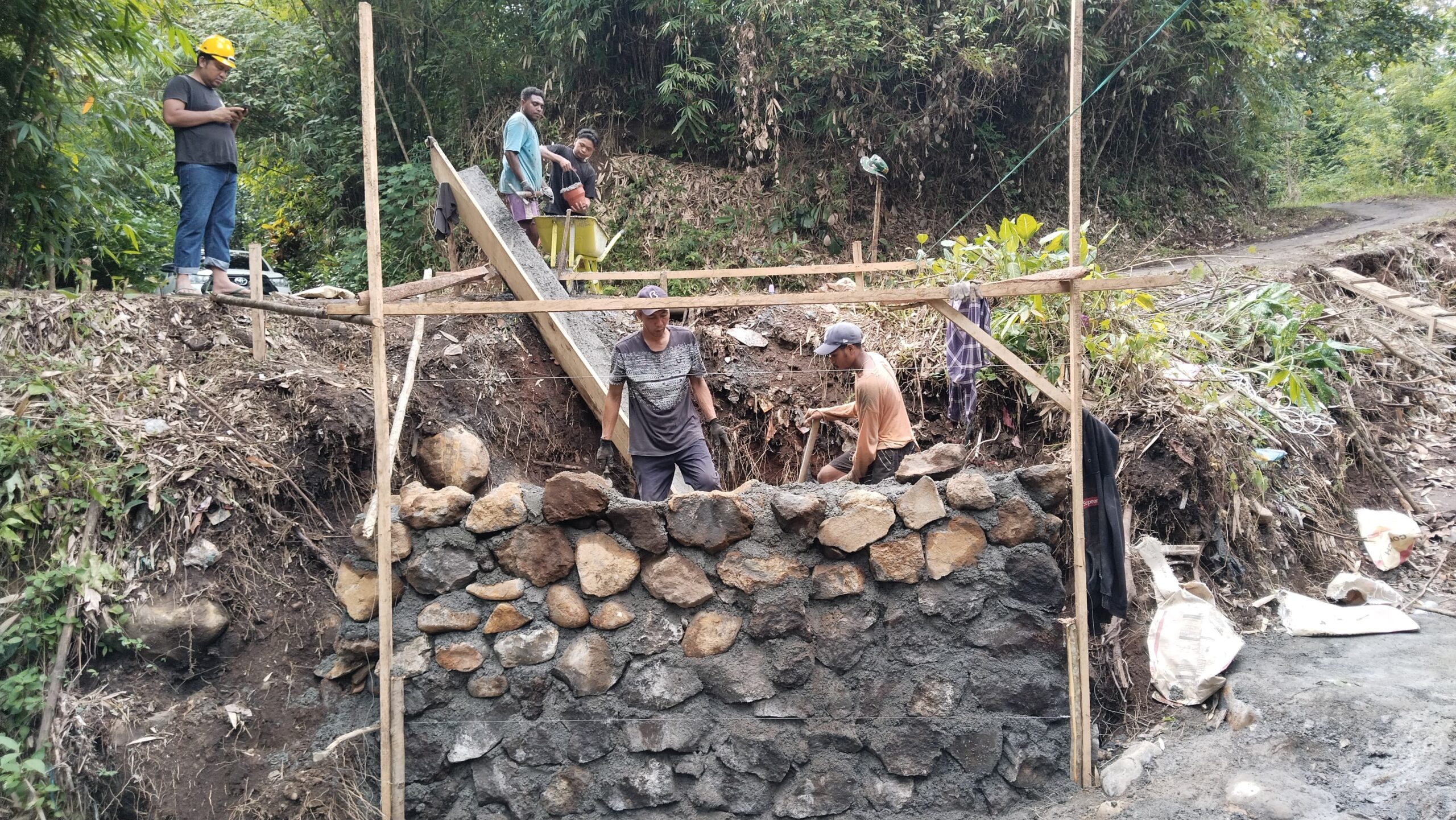 Kegiatan pengerjaan berjalan lancar tanpa hambatan berarti sehingga proses pembangunan dapat berlangsung sesuai rencana.