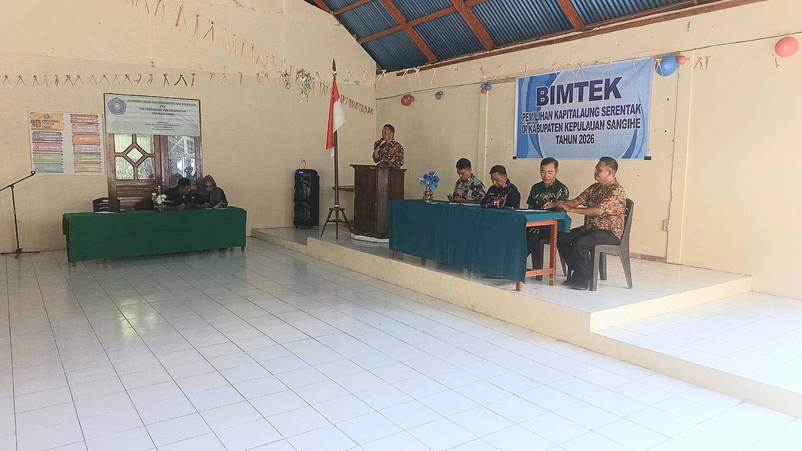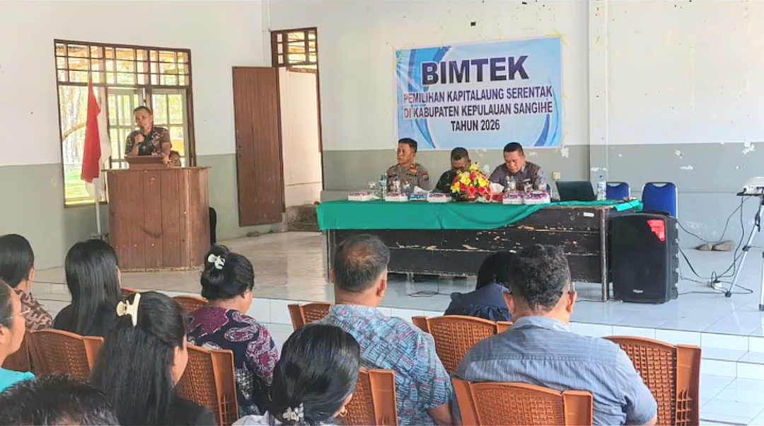 SANGIHE, GLOBALBERITA– Pemerintah Kabupaten Kepulauan Sangihe mulai menggelar tahapan bimbingan teknis (bimtek) pemilihan kapitalaung serentak yang dijadwalkan berlangsung pada Oktober 2026. Kegiatan ini diikuti oleh panitia pemilihan dari 118 kampung dan dilaksanakan secara bertahap di seluruh kecamatan, Kamis (23/04/2026)