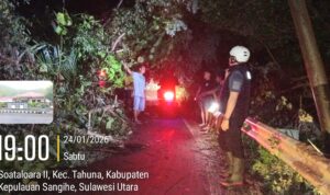 SANGIHE, GLOBALBERITA–Personil Polsek Tahuna dipimpin Kapolsek Iptu David Kojongian, SH kembali melakukan