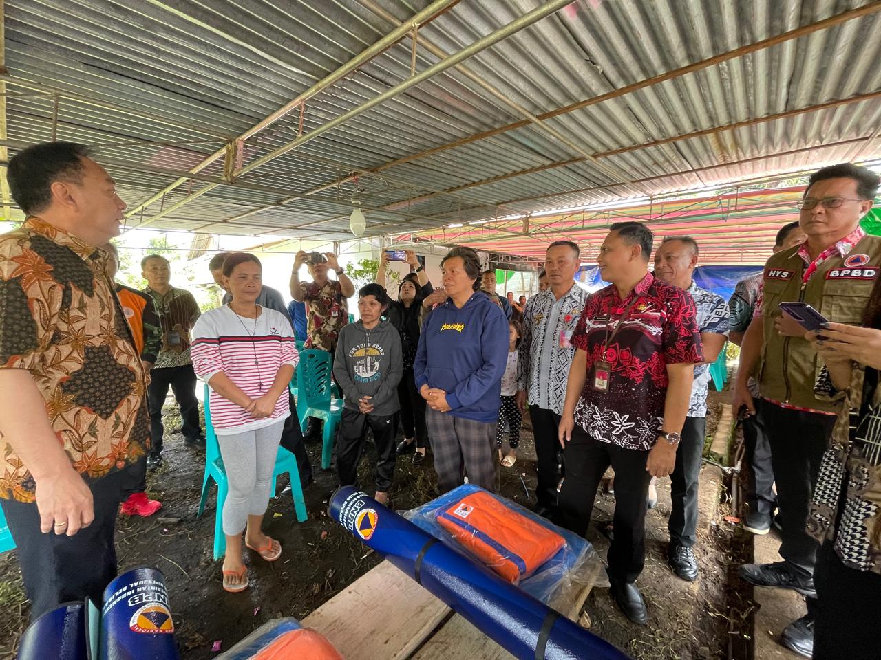 Turut hadir dalam penyerahan bantuan Sekretaris Daerah Kota Tomohon Edwin Roring, S.E., M.E., Kasat Pol PP, Kepala BPBD, Camat Tomohon Barat, dan Lurah Woloan Satu Utara