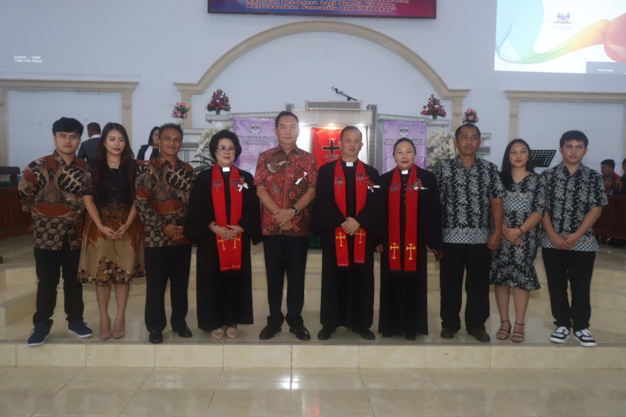 GLOBAL BERITA, TOMOHON — Walikota Tomohon Pnt Caroll J A Senduk SH mengikuti ibadah syukur Pisah sambut dari Pdt Christine D J Sampow MTh kepada Pdt Frolly Tulung STh di Gereja GMIM Nafiri Pangolombian, Minggu 23 Juni 2024.