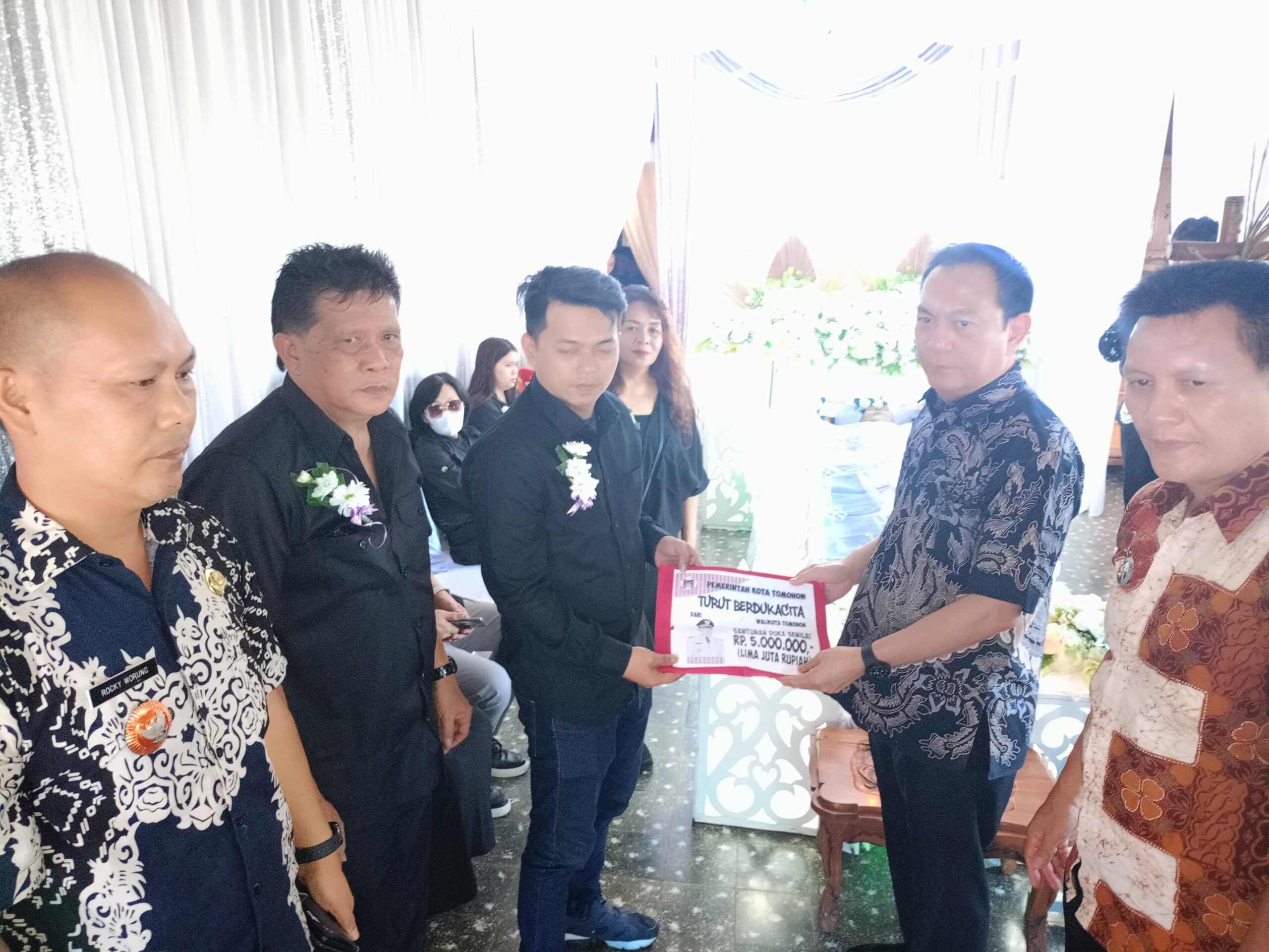 Selanjutnya Pemerintah dalam hal ini Walikota Tomohon menyerahkan santunan duka dari pemerintah Kota Tomohon serta Dokumen Kependudukan kepada Keluarga.
