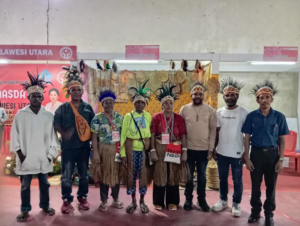 GLOBAL BERITA, TOMOHON — Sanggar Seni Merah Putih Kampung Nawaripi, Kabupaten Mimika mewakili Provinsi Papua Tengah di Pameran Tomohon Expo dalam rangkaian Tomohon Internasional Flower Festival (TIFF) 2024 yang digelar di Gelanggang Olahraga (GOR) Babe Palar.