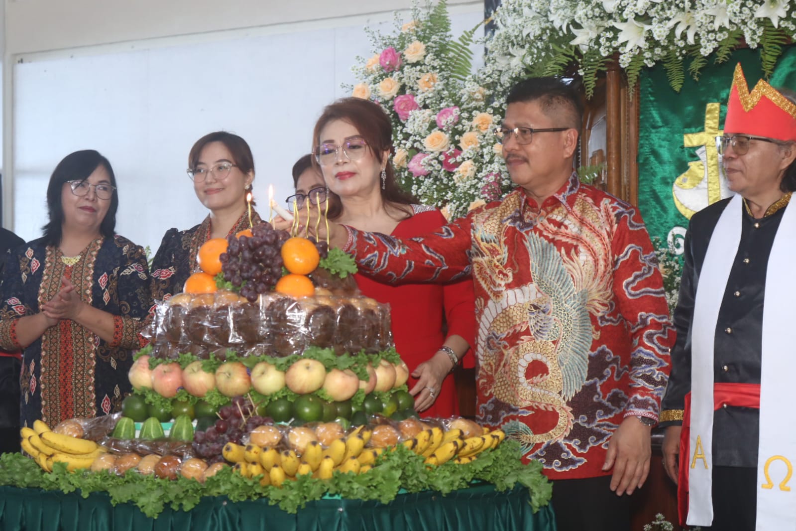 “Perayaan hari ulang tahun saat ini, tentu merupakan suatu karya agung Tuhan, kepada kita sekalian. khususnya jemaat yang menjadikannya sebagai sumber inspirasi dan motivasi untuk semakin meningkatkan pelayanan, bahkan menjalin kemitraan yang harmonis dengan sesama anggota jemaat, dalam rangka memberikan pelayanan yang penuh kasih, menyentuh kebutuhan jemaat, sehingga akan semakin memantapkan sikap dan perilaku hidup jemaat yang sejahterah, rukun dan damai, dimana tentu saja semuanya akan berdampak positif pada kerukunan dan kenyamanan, serta bagi kemuliaan tuhan ditengah-tengah hidup berjemaat dan bermasyarakat”,tambahnya.