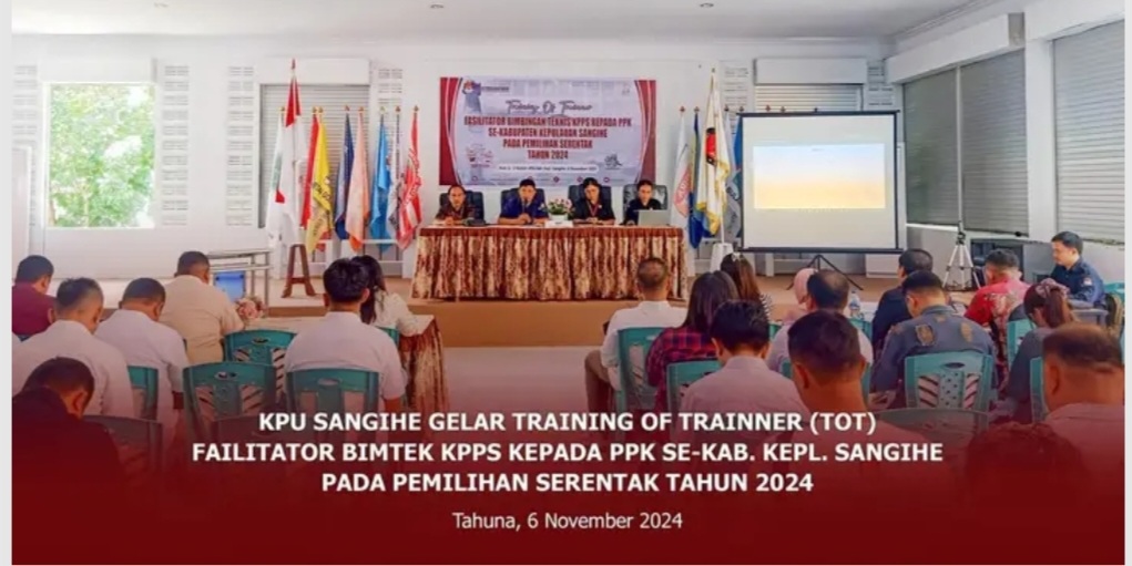 Kegiatan ini sebagai untut dari keikutsertaan KPU Sangihe dalam kegiatan Training of Trainers yang dilaksanakan KPU Provinsi Sulawesi Utara di Hotel Aryaduta selama 3 hari pada tanggal 3-5 november 2024.