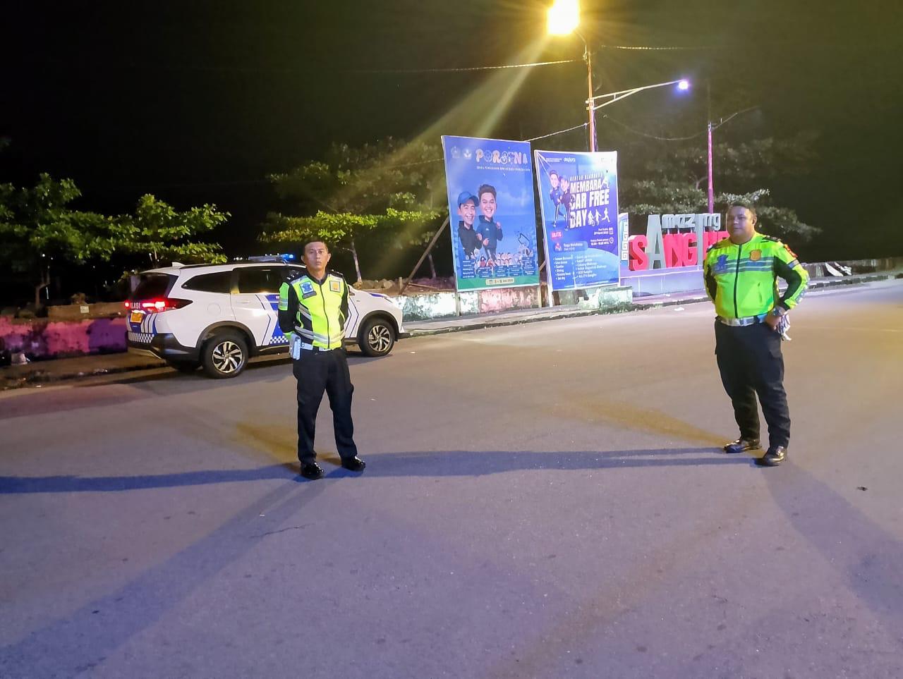 Dengan rute Patroli dari Mako Polres Kepl Sangihe, Kel. Tona II, Kel Tona I, Kel. Tapuang, Boulevard Kel Tidore, Bolevard Pelabuhan Tua, Kel. Apengsembeka, Kel. Bungalawang, Kel. Santiago lalu kembali melewati pusat kota Pos 930, Kel. Soataloara 1, Kel Soataloara II, Kel Dumuhung, Mako Polres Kepl Sangihe Serta dilokasi jalan diseputaran kota Tahuna yg sering digunakan untuk melaksanakan Balap Liar.