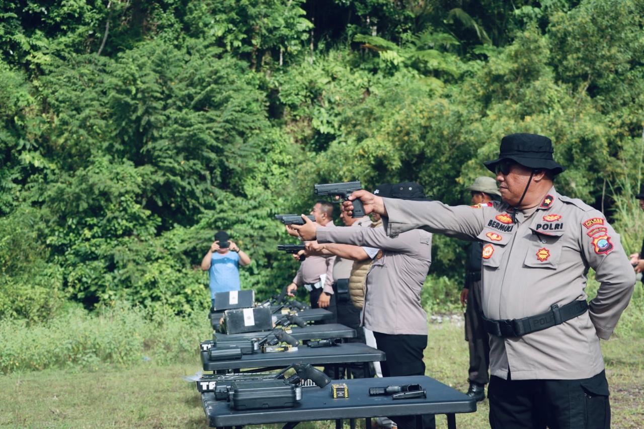 Polres Kepulauan Sangihe, Gelar Latihan Menembak Sambut HUT Bhayangkara Ke 79 Tahun