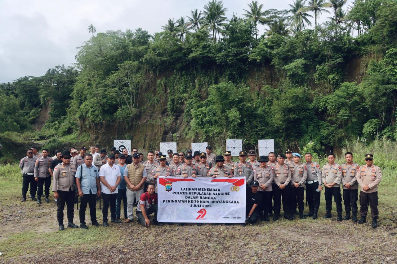 SANGIHE, GLOBALBERITA — Polres Kepulauan Sangihe menggelar latihan menembak dalam rangka hari ulang tahun Bhayangkara pada tanggal 1 Juli 2025 mendatang yang ke 79 tahun.