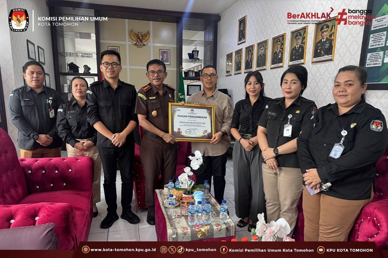 Kepala Kejaksaan Negeri Tomohon, Alfonsius Gebhard Loe Mau, S.H., M.H., menyampaikan apresiasi kepada KPU Kota Tomohon yang telah sukses menyelenggarakan Pemilihan Kepala Daerah di Kota Tomohon dengan aman dan tertib. Sebagai bentuk apresiasi, KPU Kota Tomohon memberikan Piagam Penghargaan kepada Kejaksaan Negeri Tomohon.