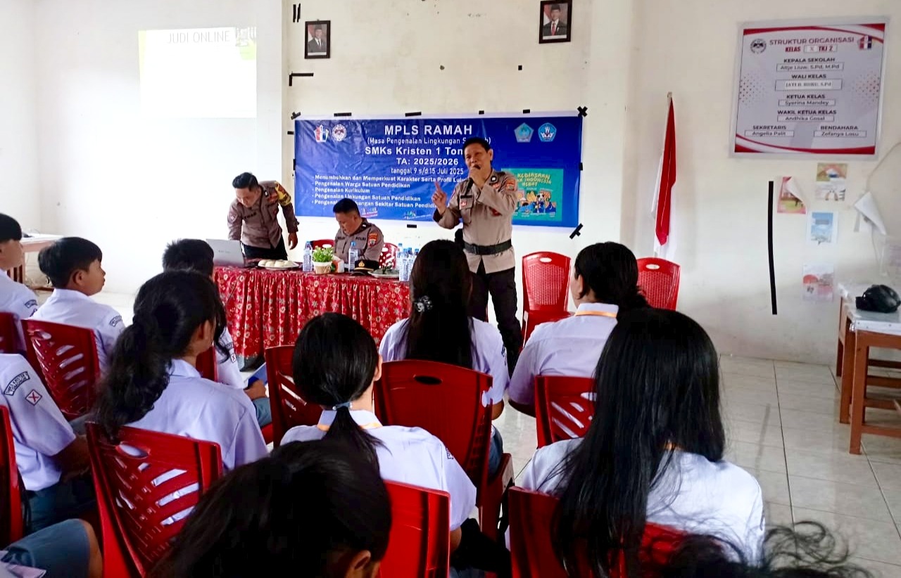 Global Berita, Tomohon — Dalam upaya menciptakan lingkungan pendidikan yang aman dan mendukung terwujudnya generasi muda yang unggul dan berkarakter, Polres Tomohon melalui Satuan Pembinaan Masyarakat (Sat Binmas) menggelar sosialisasi Kamtibmas di SMKs Kristen 1 Tomohon pada Selasa, 15 Juli 2025.