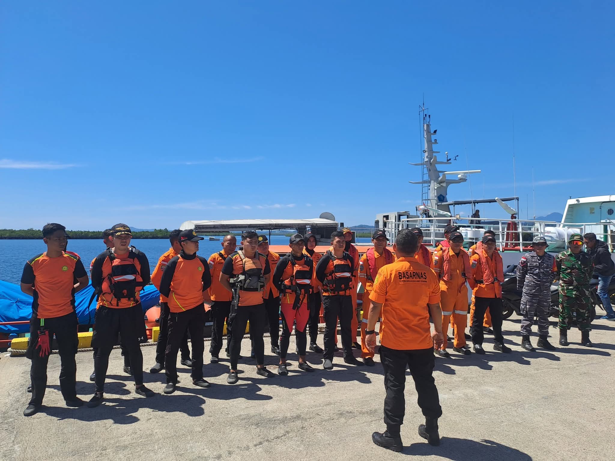 Dalam operasi hari ini, tim SAR terdiri dari 23 personel gabungan dari Basarnas, termasuk ABK dan rescuer, serta didukung oleh 2 personel TNI AL dan 1 personel TNI AD.