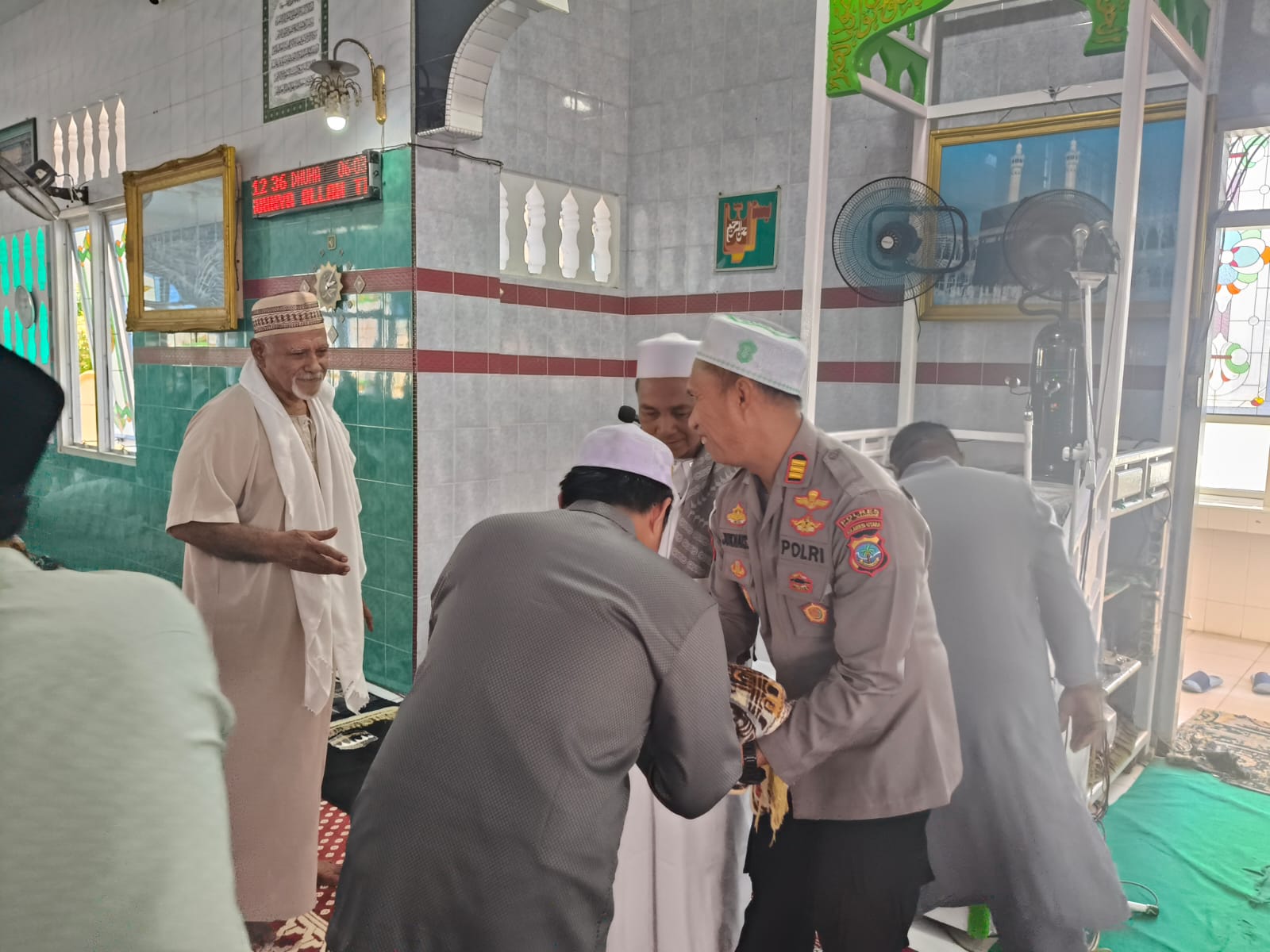 Hadir dalam kegiatan tersebut Kabag SDM Polres Kepulauan Sangihe AKP Juknais Katiandagho, S.E., S.H. Kehadiran jajaran Polres ini disambut hangat oleh masyarakat dan pengurus masjid.