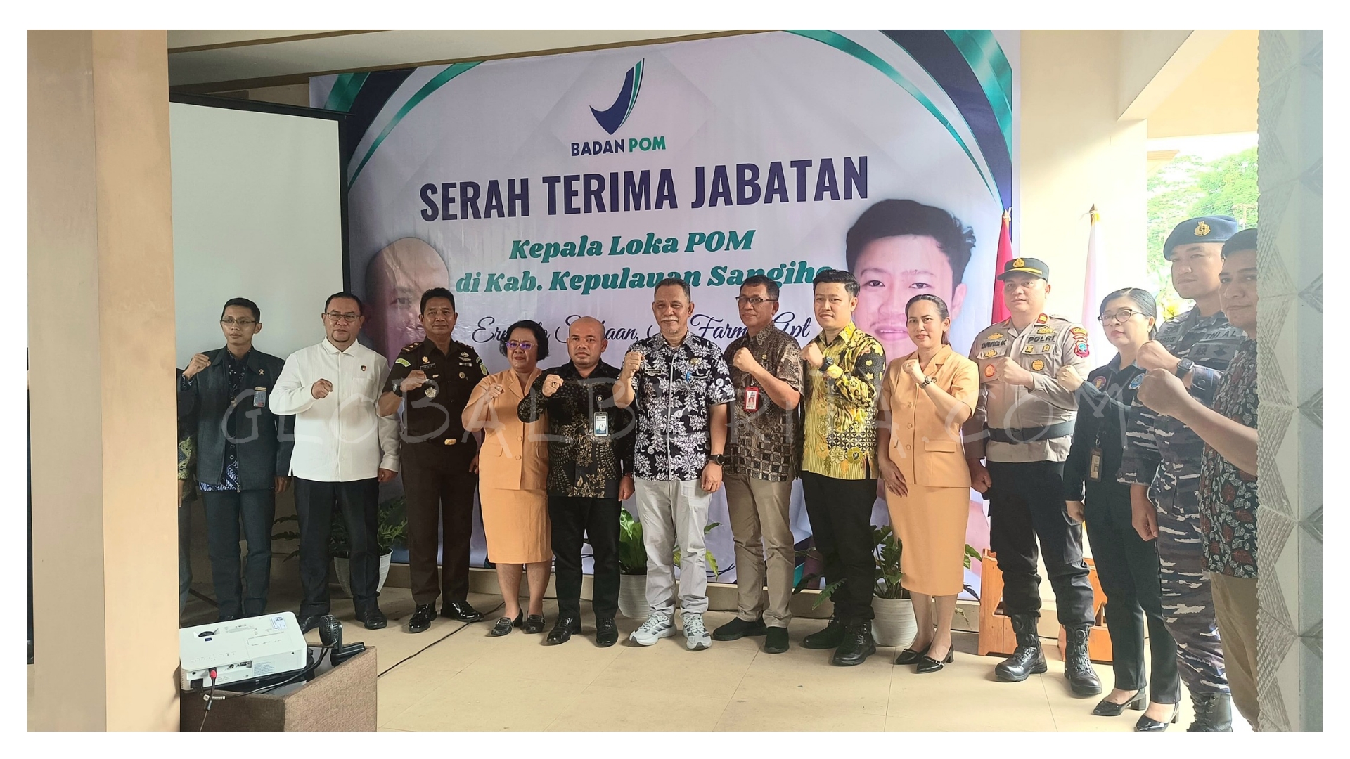 SANGIHE, GLOBALBERITA– Serah terima jabatan Kepala Loka Pengawasan Obat dan Makanan (Loka POM) di Kabupaten Kepulauan Sangihe resmi dilaksanakan pada Jumat (3/10/2025) pagi di Gedung Santiago, Kelurahan Manente, Kecamatan Tahuna.