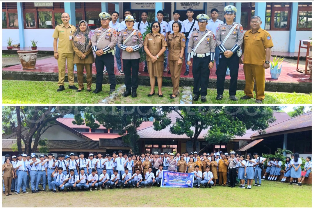 SANGIHE, GLOBALBERITA– SMK Negeri 3 Tahuna menjadi lokasi kegiatan Police Goes To School dari Satuan Lalu Lintas Polres Kepulauan Sangihe, Senin (3/11/2025).
