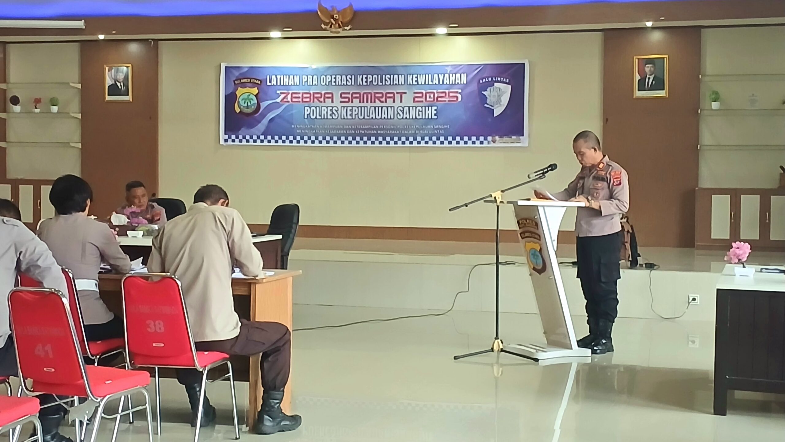 SANGIHE, GLOBALBERITA– Dalam rangka kesiapan pelaksanaan Operasi Zebra Samrat Tahun 2025, Polres Kepulauan Sangihe menggelar Latihan Pra Operasi (Latpraops) di Aula Sanika Satyawada Polres Kepulauam Sangie, Jumat (14/11/2025) pukul 09.30 WITA.