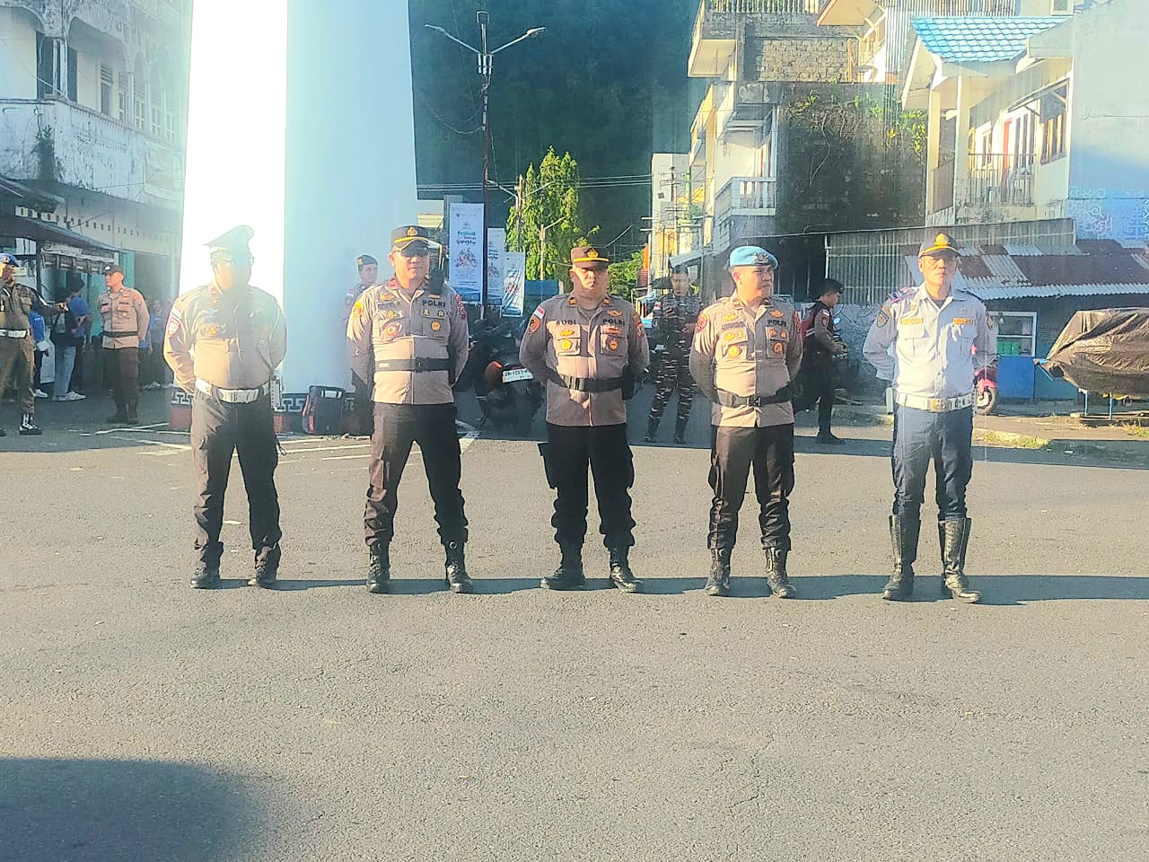 Hadir dalam apel tersebut sejumlah pejabat dan unsur terkait, antara lain:Kapolsek Tahuna IPTU David Kojongian, SH, Kapolsek Tabukan Tengah IPDA B. Salindeho, SH, Kasie Propam Polres Sangihe IPDA J. Mandagi, SH, KBO Satuan Lantas IPDA J. Lahamendu, Perwakilan Dinas Perhubungan