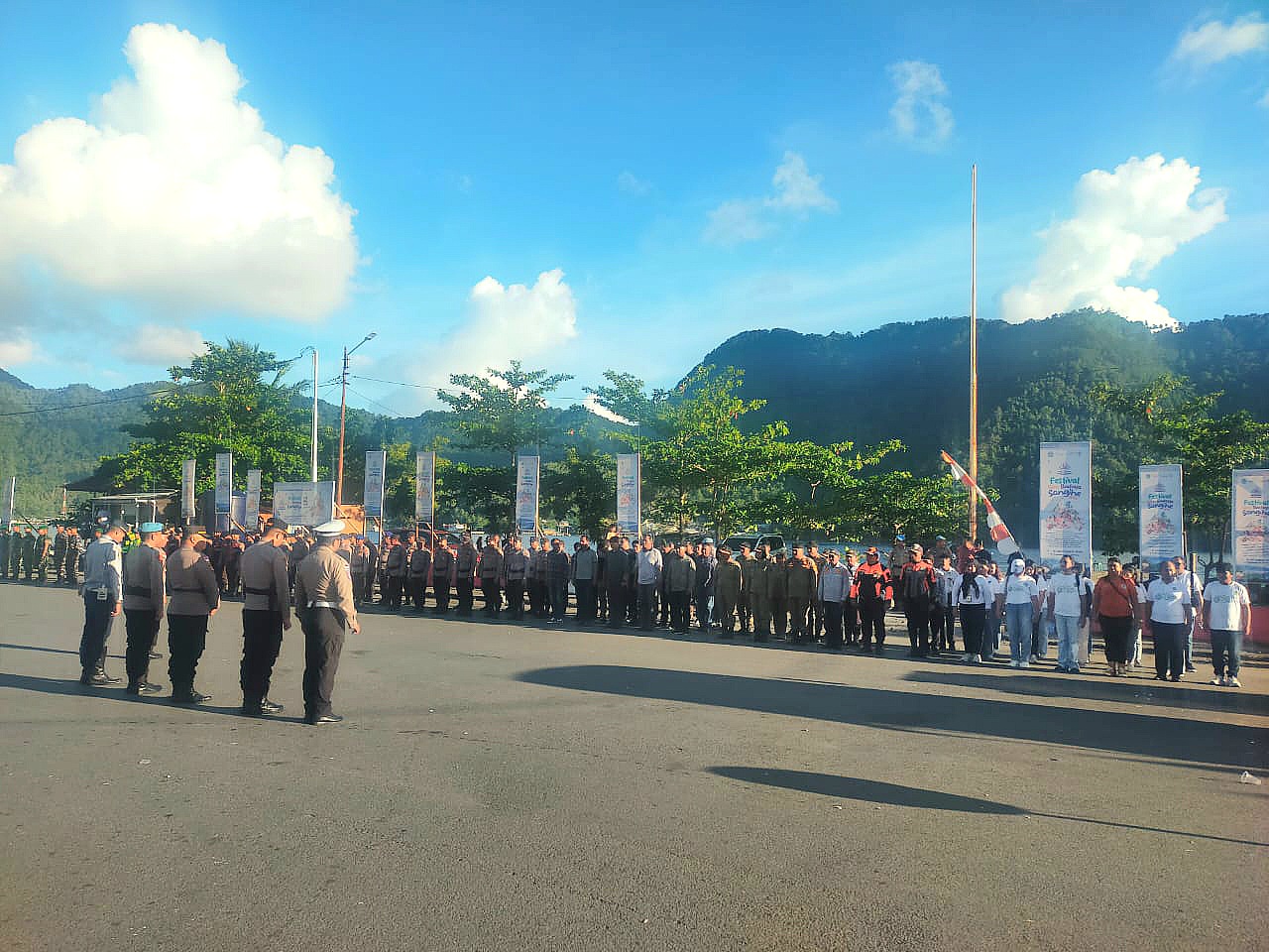 Kapolres Kepulauan Sangihe AKBP Abdul Kholik, SH, SIK, MAP, menyampaikan terima kasih atas pelaksanaan apel dan sinergi seluruh pihak dalam menjaga keamanan selama rangkaian festival.
