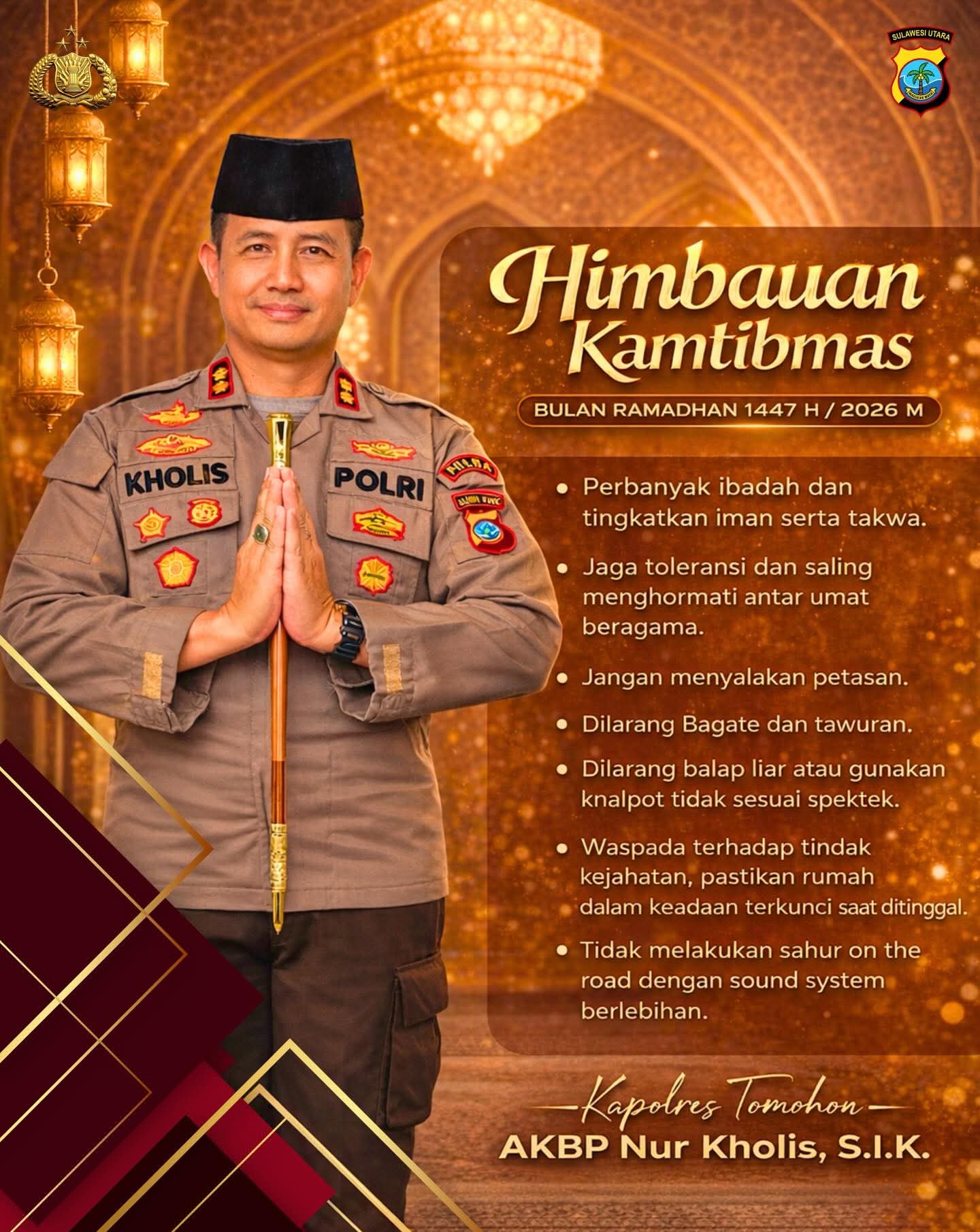 TOMOHON, Globalberita.com – Menjelang datangnya Bulan Suci Ramadan 1447 H yang jatuh pada tahun 2026 ini, Kepolisian Resor (Polres) Tomohon secara resmi mengeluarkan seruan terkait Keamanan dan Ketertiban Masyarakat (Kamtibmas). Langkah ini diambil guna memastikan seluruh lapisan masyarakat dapat menjalankan ibadah dengan aman, nyaman, dan penuh keberkahan di wilayah hukum Polres Tomohon.