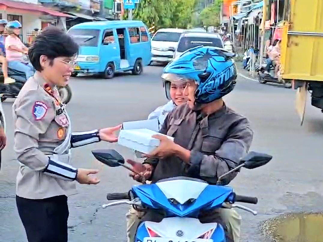 Kasat Lantas Polres Kepulauan Sangihe, IPTU Nelta, mengatakan kegiatan ini tidak hanya berbagi makanan berbuka puasa, tetapi juga sebagai sarana edukasi kepada masyarakat.