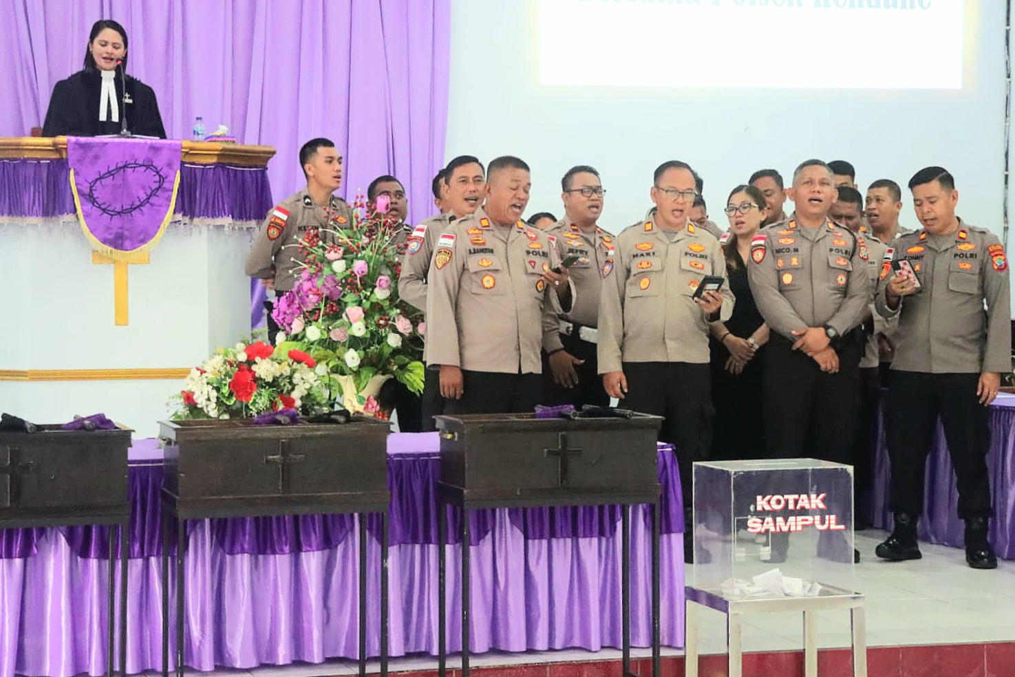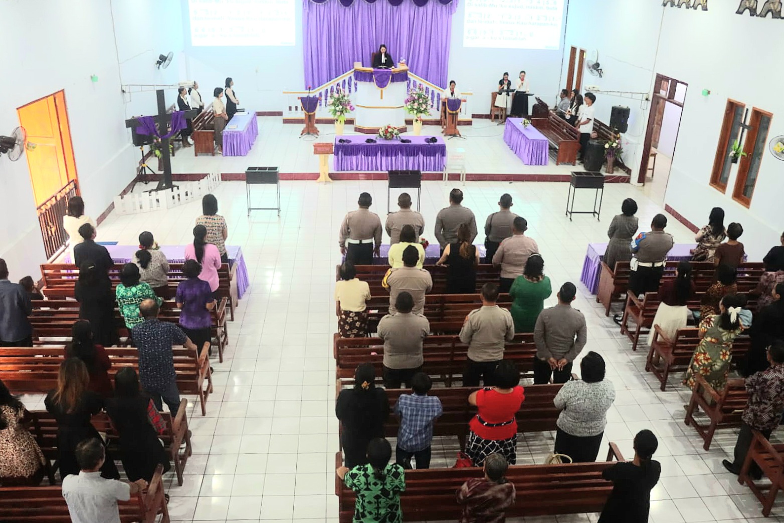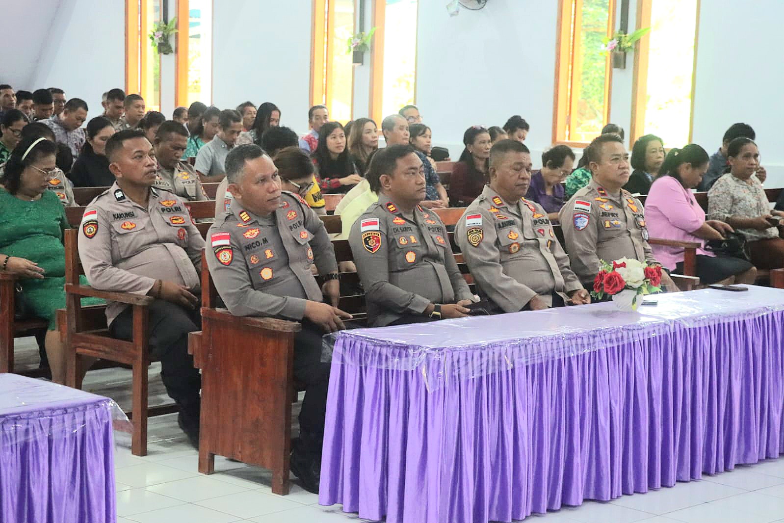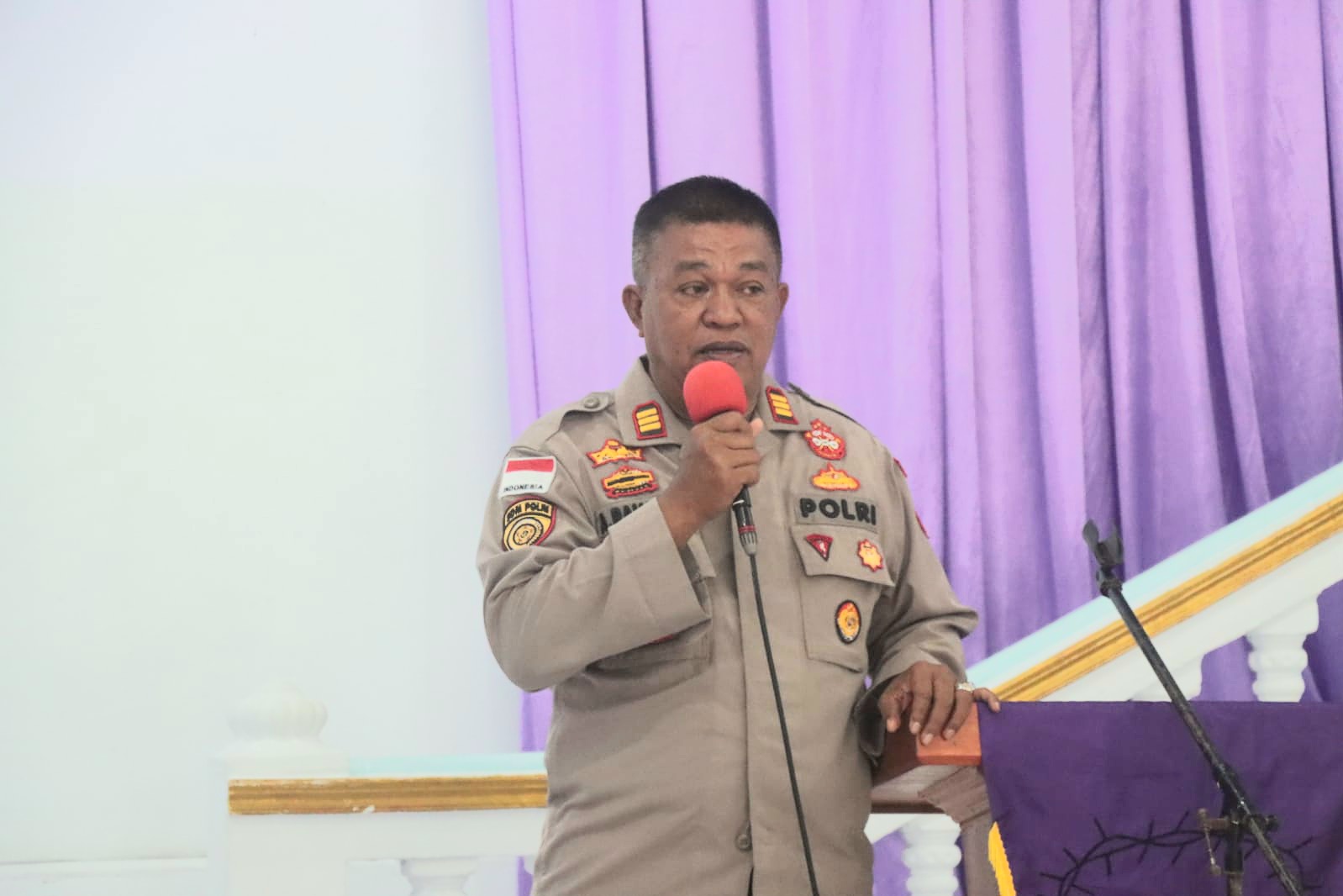 Dalam sambutannya, Kabag SDM Polres Kepulauan Sangihe, AKP Anderson Rahotan, mengajak seluruh jemaat untuk turut mendukung pemerintah dan kepolisian dalam menjaga situasi keamanan dan ketertiban masyarakat (Sitkamtibmas).