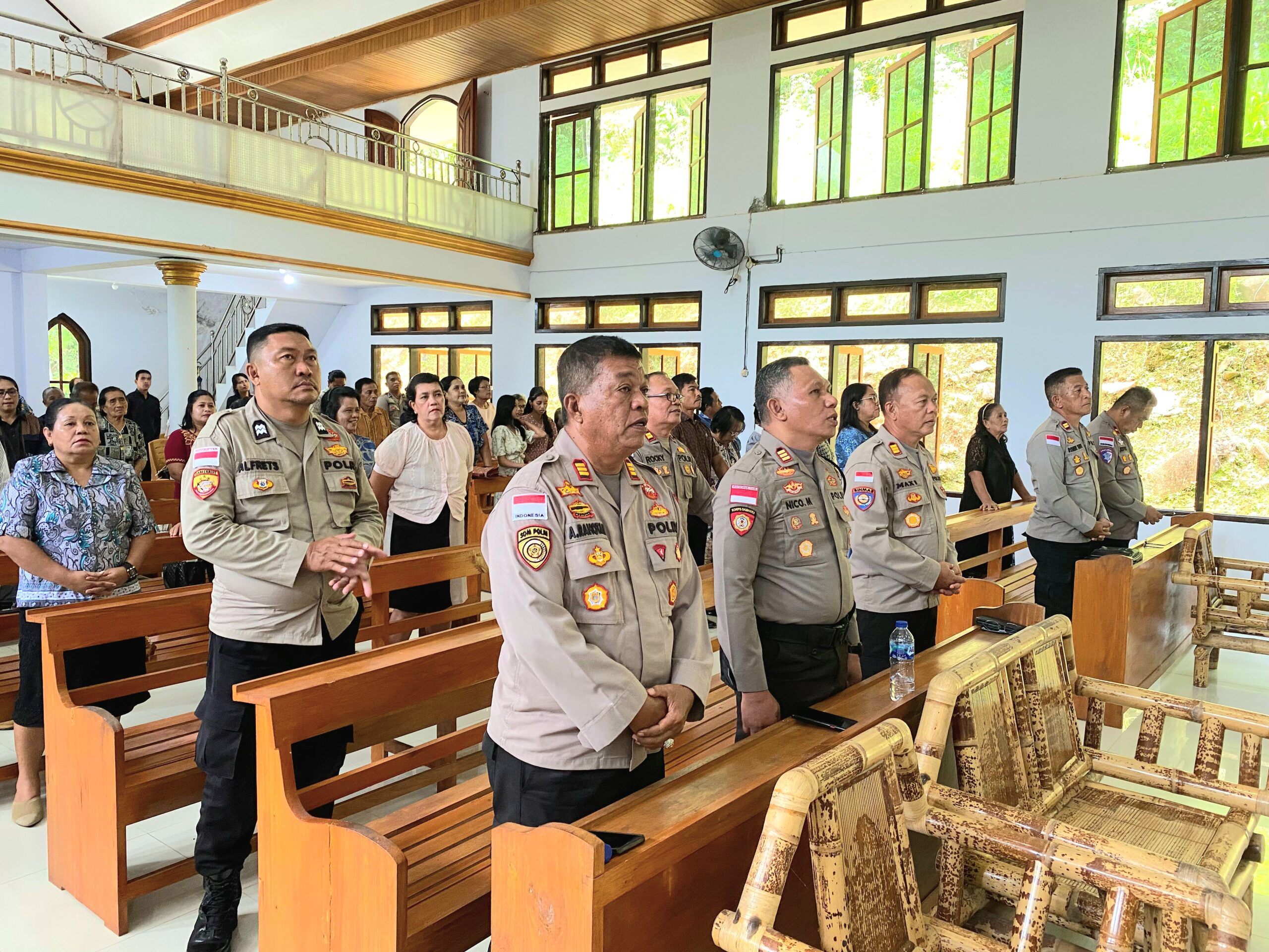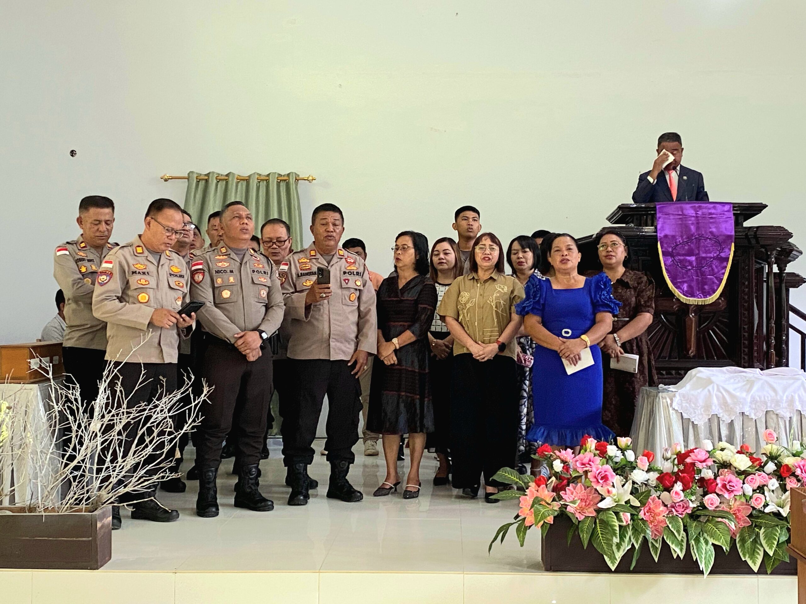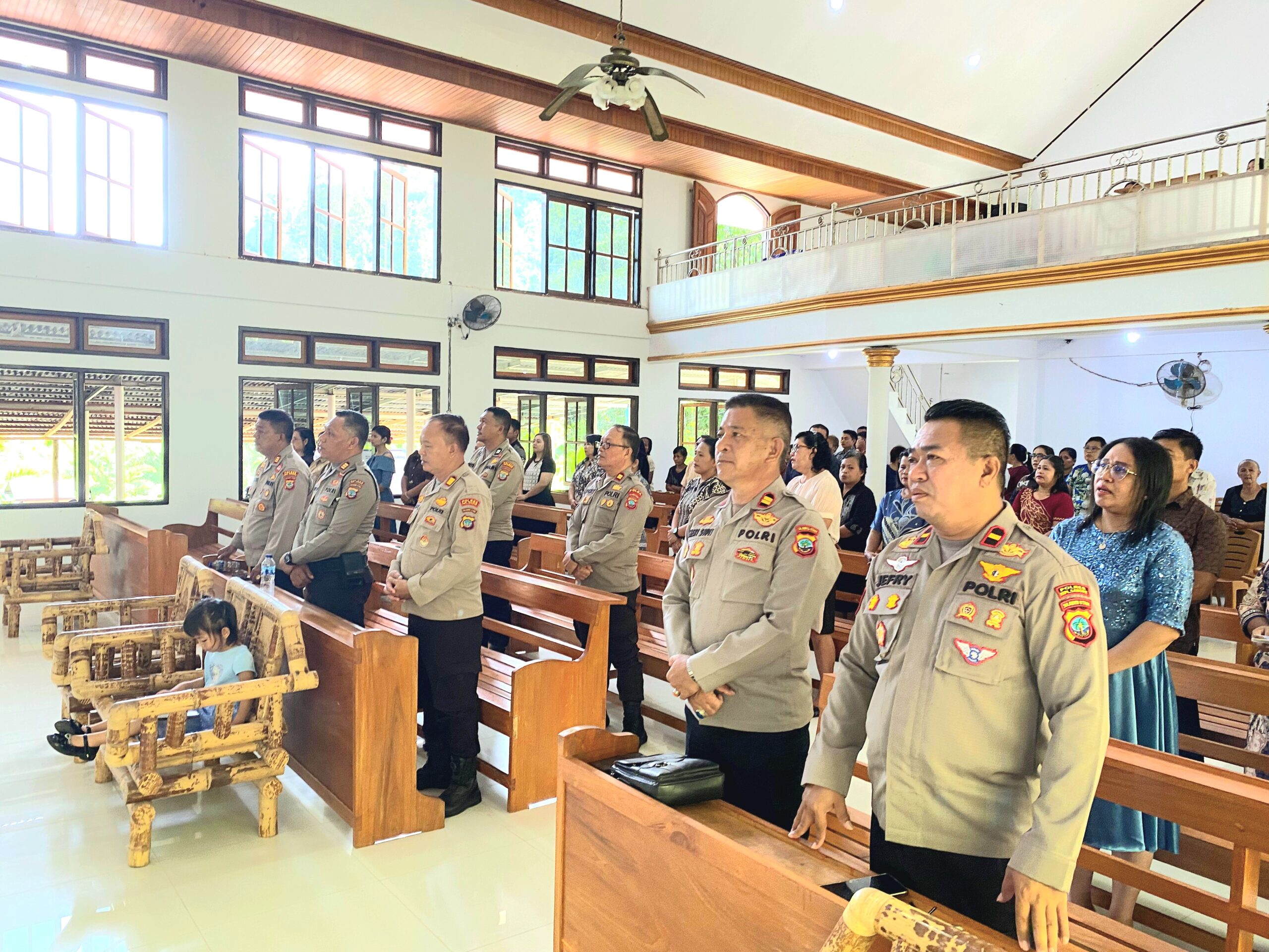 Pada kesempatan tersebut Kapolres Kepulauan Sangihe AKBP Abdul Kholik, SH, SIK, MAP diwakili oleh Kabag SDM Polres Kepulauan Sangihe AKP Anderson Rahotan dalam sambutannya mengingatkan kepada jemaat yang hadir, agar dapat membantu pemerintah dalam menjaga Sitkamtibmas dengan terus menjaga Tali silaturahmi antar umat beragama, sehingga selalu menciptakan situasi yang aman dan kondusif, juga selalu taat dalam berlalu lintas, serta dapat menghindari hal hal yang berhubungan dengan Miras / minuman keras yang sudah banyak melatarbelakangi terjadinya tindak pidana kejahatan khususnya di wilayah Kabupaten Kepulauan Sangihe serta ajakan untuk anak anak muda Gereja yang memenuhi syarat untuk mengikuti Seleksi Penerimaan Anggota Polri Tahun Ajaran 2026.