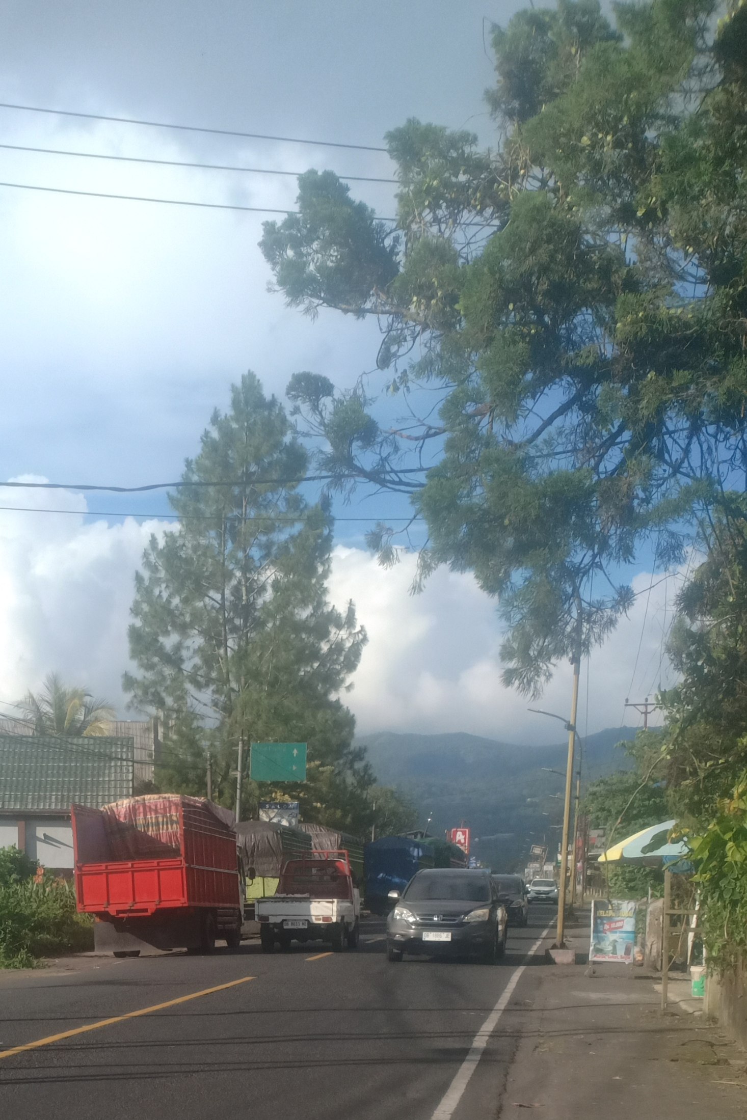 Deretan kendaraan diesel tersebut terlihat tertib mengisi lajur kiri, sehingga badan jalan utama tetap bisa dilalui dengan bebas oleh kendaraan lain dari kedua arah.