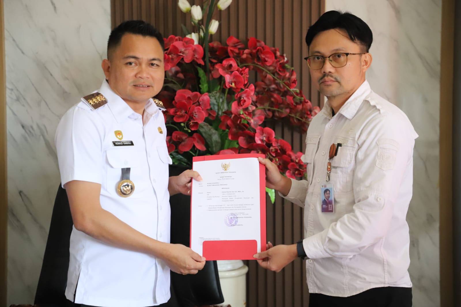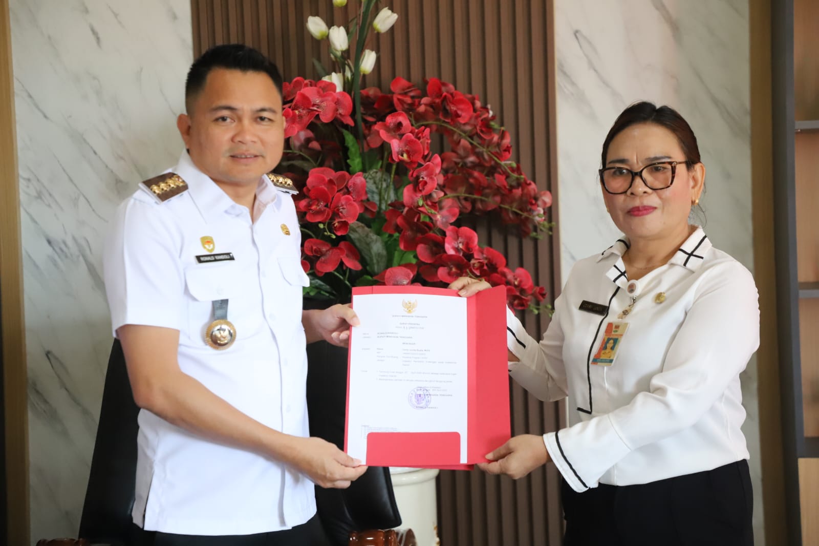 MITRA, Globalberita.com-Corry Junita Ruata M.Pd. Halens Ryanlie Ole, S.E., MSA., Ak. sebagai Plt. Plt. Kepala Badan Pengelolaan Keuangan dan Pendapatan Daerah (BPKPD) Kabupaten Minahasa Tenggara. Menerima Surat Perintah (Sprin) Bupati Ronald Kandoli, bertempat di kantor Bupati Lantai III, Rabu 1 April 2026.