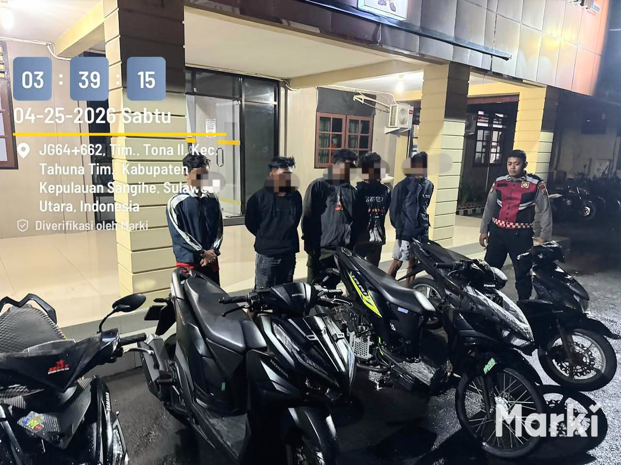 Sebanyak 11 unit ranmor roda dua yang diduga hendak melakukan balap liar dan menggunakan knalpot brong, berhasil diamankan satuan samapta polres kepulauan sangihe saat melakukan patroli KRYD sejak hari jumat 24 April 2026 dini hari hingga sabtu 25 April 2026.