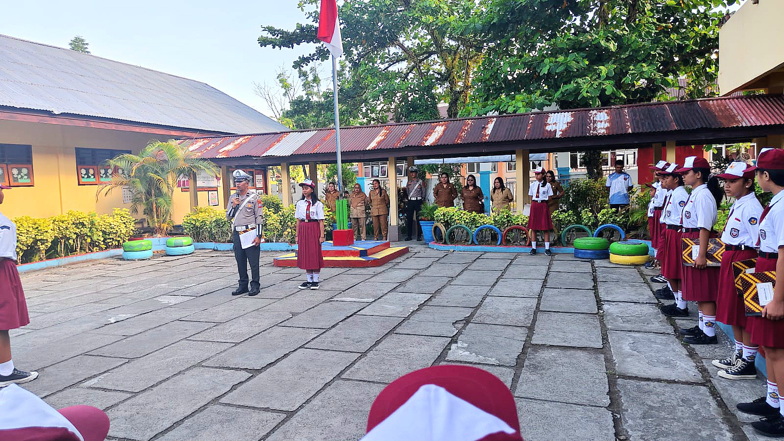 Turut hadir dalam kegiatan tersebut Kepala SDN Inpres Tona Olfi Cristine Ma’i, S.Pd, personel Satlantas Polres Kepulauan Sangihe, para guru, staf sekolah, serta seluruh siswa-siswi SDN Inpres Tona.